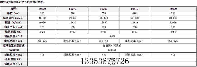 6、系列齊全,有FU150、FU200、FU270、FU350、FU410、FU500(數(shù)字表示運(yùn)送槽內(nèi)寬)。