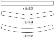 影響垂直螺旋輸送機性能的操作變量有螺旋轉(zhuǎn) 速、進口速度、填充系數(shù)、螺旋葉片的形狀、顆粒的形狀等。試驗選取進口速度為 10 m/s,由文獻[5]可知,填充系數(shù)對平均顆粒速度、平均顆粒軸向速度、平均顆粒周向速度的影響很小,而本文中主要分析近軸處的 平均顆粒周向速度、近壁處的平均顆粒軸向速度,因 此可選填充系數(shù)取做一個固定參數(shù),即填充系數(shù)為 50%,忽略顆粒形狀對輸送性能的影響,因此試驗選 取了螺旋轉(zhuǎn)速、螺旋葉片作為操作參數(shù),來展開詳細 的試驗設計。 根據(jù)文獻[5]的分析,選取螺旋轉(zhuǎn)速參數(shù)分別為600、900、1 000、1 200、1 400、1 600、1 800 r/min;螺旋 葉片母線的形狀分別為直線型、折線型、曲線型,其形 狀簡圖如圖 2 所示,由排列組合知識可知,需要進行21 次試驗。
